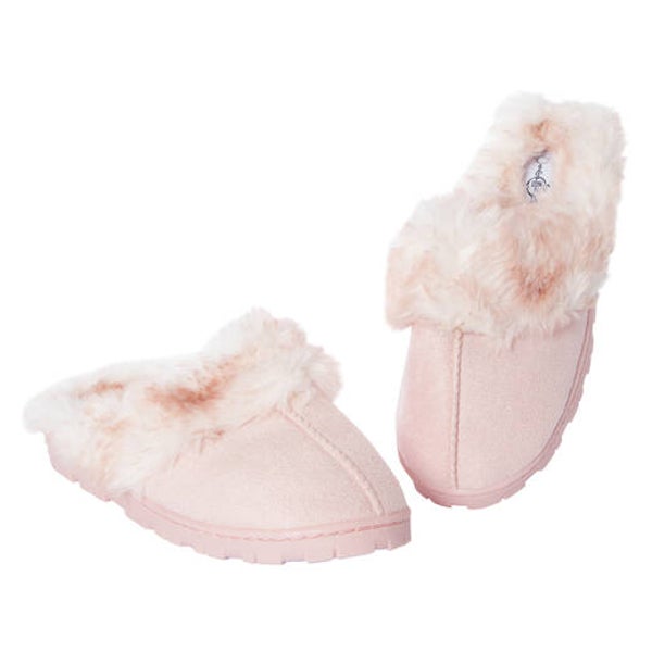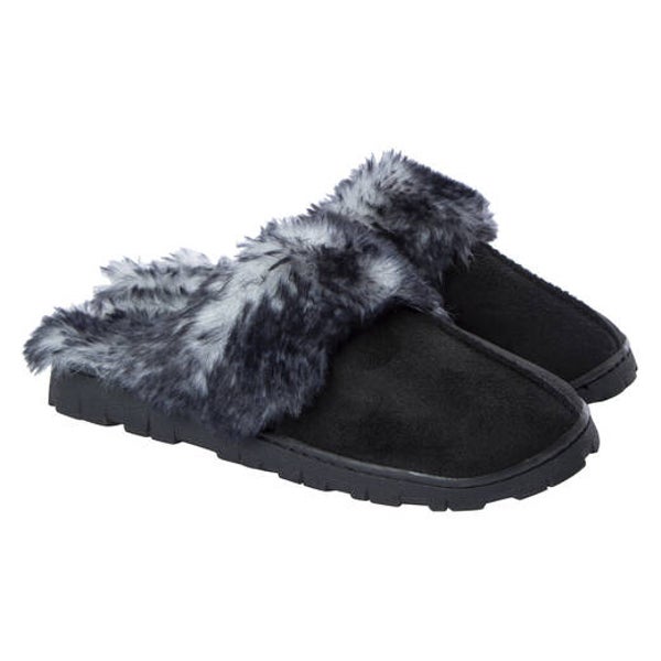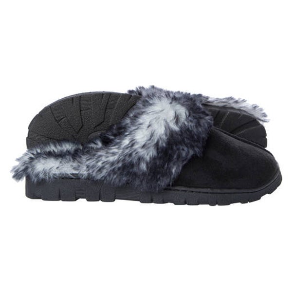 Just slip on the ladies lug sole scuff slippers & be cozy! These cute faux fur slippers have a classic look for a very comfortable price.