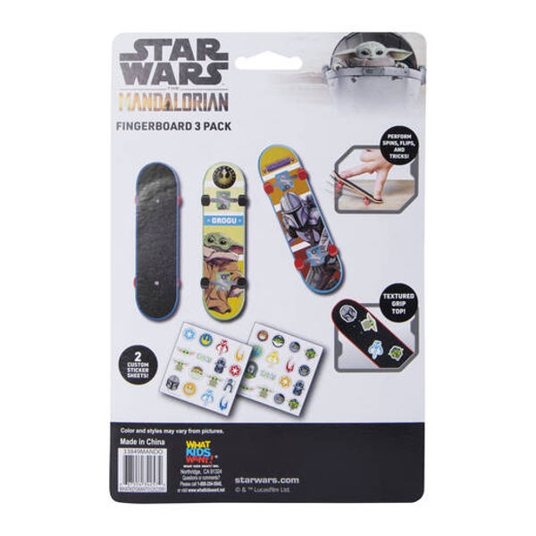 Each board features a textured grip top. what's included: 3 fingerboards & stickers ages: 3+ (choking hazard)