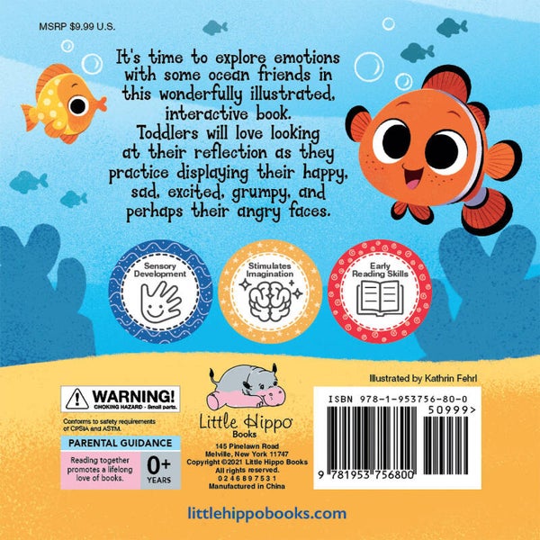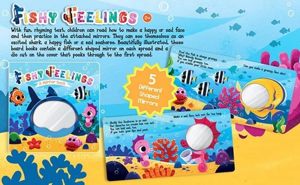 In Fishy Feelings, it's time to explore emotions with some ocean friends in this wonderfully illustrated, interactive board book. Toddlers will love looking at their reflection as they practice displaying their happy, sad, excited, grumpy, and perhaps their angry faces.