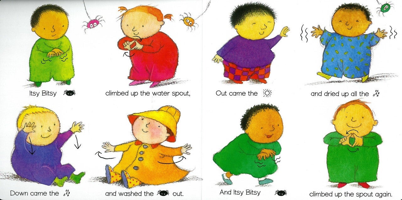Using simple sign language, children who communicate before they speak have a head start in their development. Help your child to develop a basic sign vocabulary by singing familiar nursery rhymes while signing along.