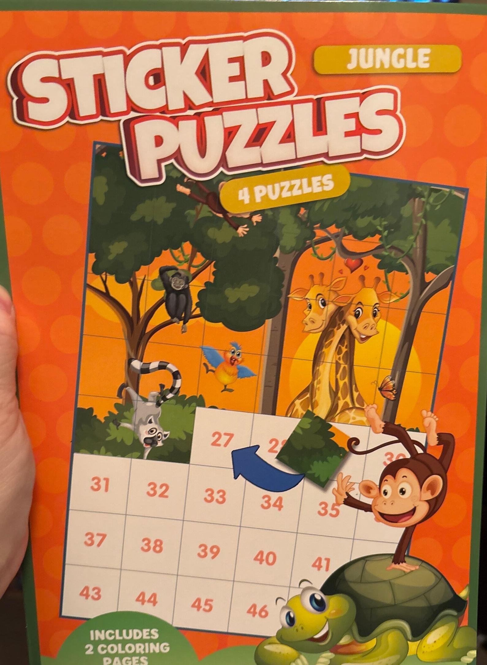 Enrichment Idea: For added educational benefit, have children solve math problems to find the stickers to apply to a puzzle. For example, tell them to find the sticker with the sum of 16+5 (i.e. 21) or to skip count by 6 to apply stickers & have them say the numbers outloud (six, twelve, eighteen...)