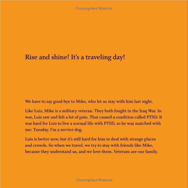 From New York's Staten Island Ferry to a double-decker bus in Washington, DC, a delightful service dog, named "Tuesday", narrates this fun and exciting journey with his disabled veteran partner to a very special place.