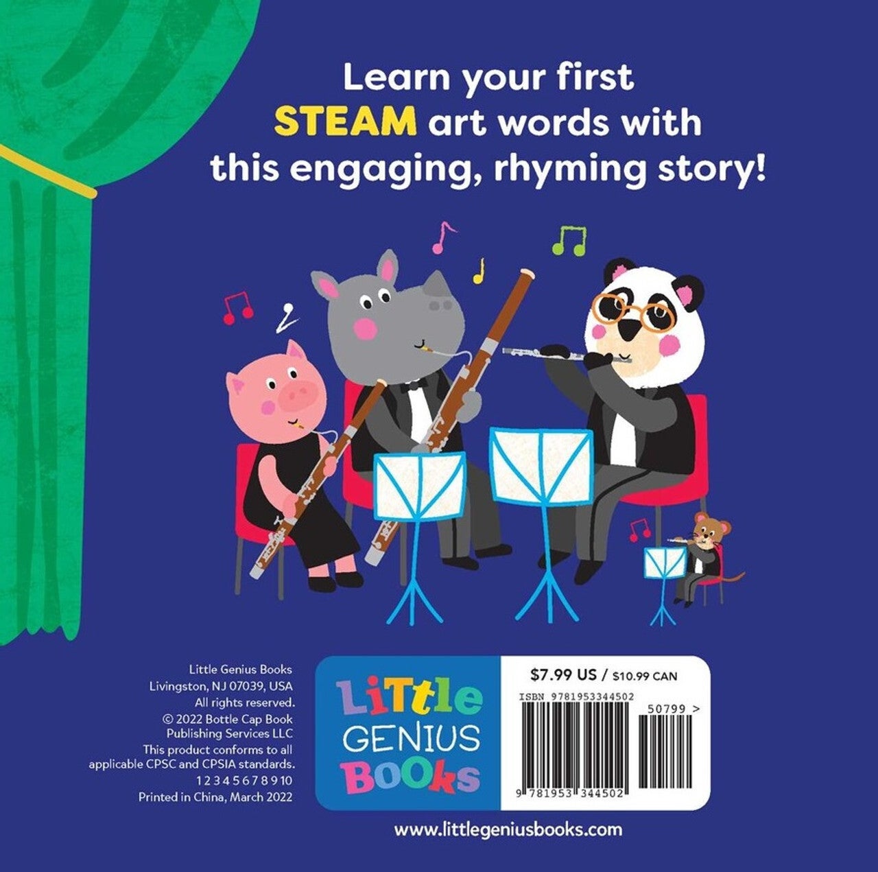 An edu-taining new series that introduces simple science, technology, engineering, art, and math (STEAM) words in an engaging, rhyming story. Specifically, this is a book which introduces vocabulary related to musical art.