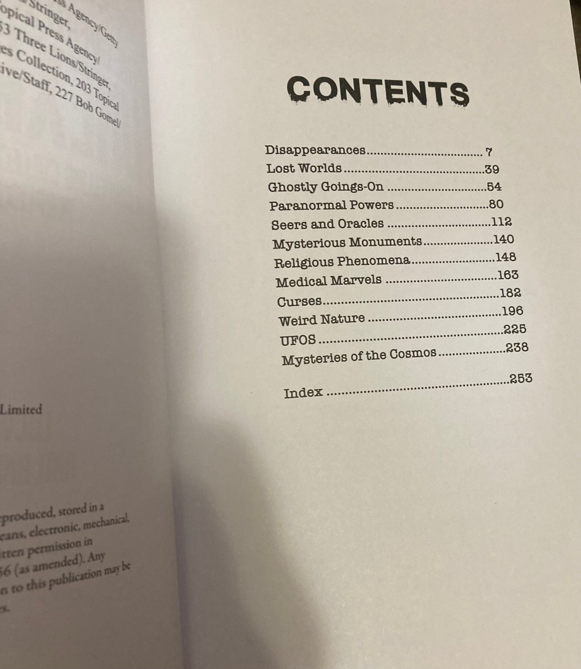 This illustrated collection of off-the-wall investigations also features scary curses, uncanny prophecies, weird medical marvels, alien abductions, lost worlds, and lots more. It is sure to both bewilder and intrigue.