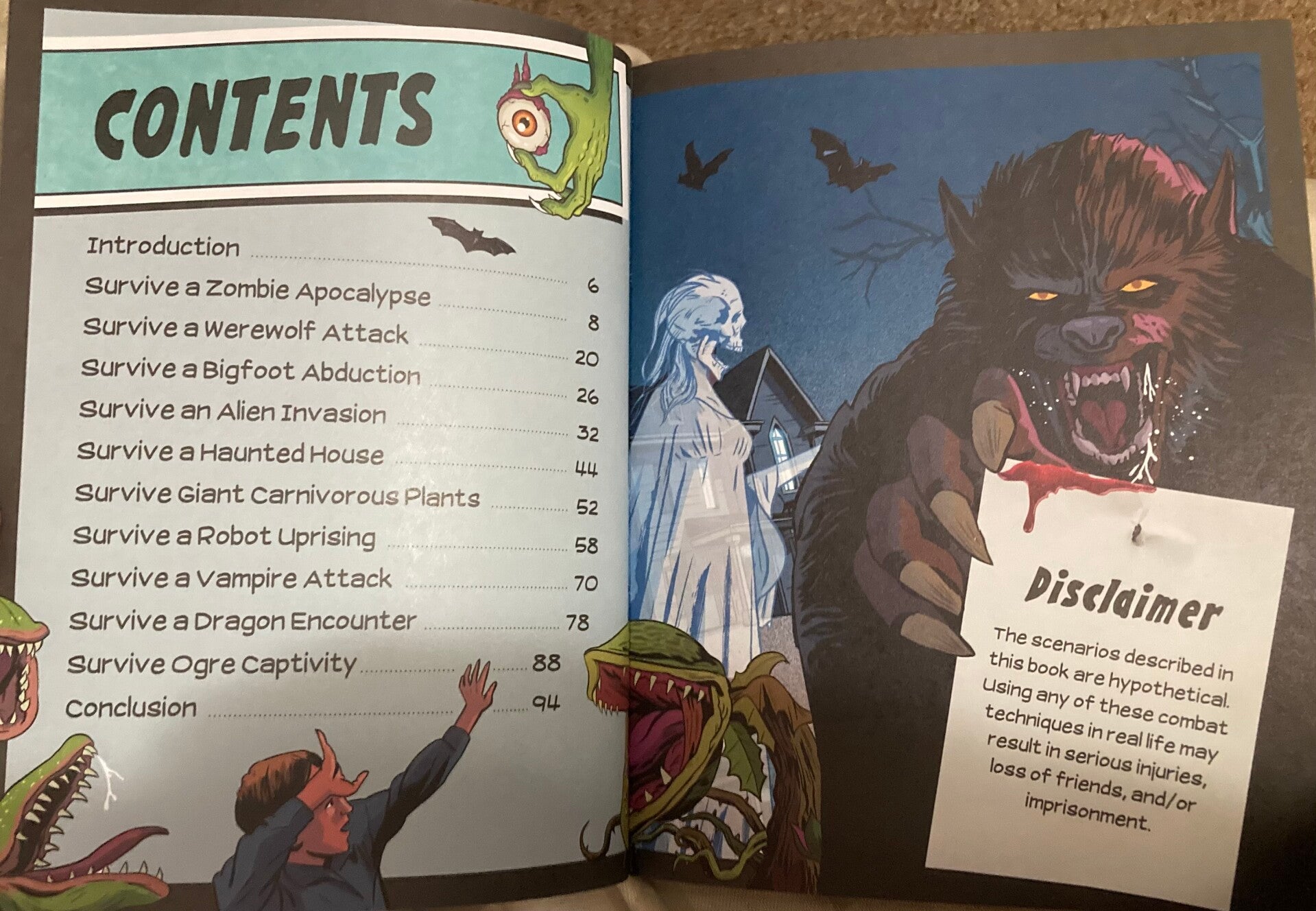 Includes vital information on how to survive encounters and attacks from things that go bump in the night including: Zombies, Werewolves, The one and only Bigfoot, Aliens, Ghosts, Carnivorous Plants, Robots, Vampires, Dragons and Ogres. This is the only survival guide you really need to own!