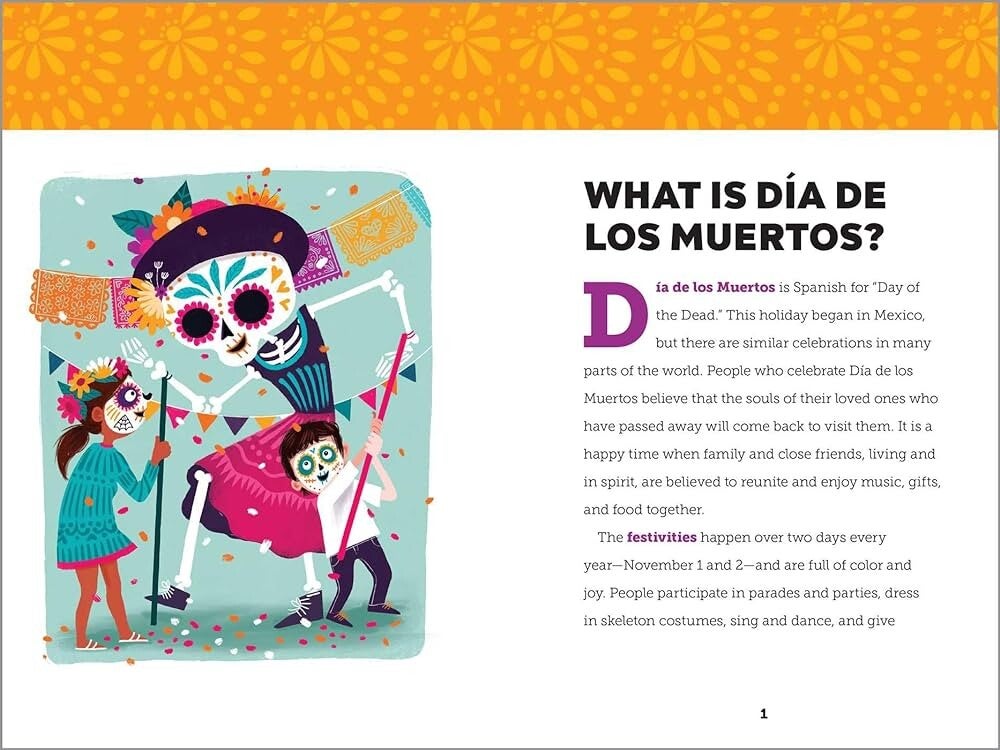 - Fun facts and illustrations—Colorful pictures and thought-provoking facts help kids discover new things about Día de los Muertos.