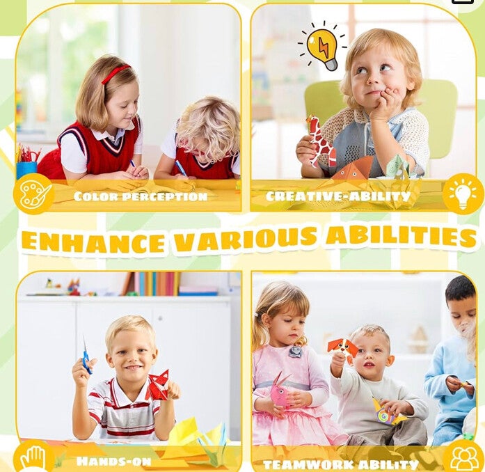 Educational Value: Origami is a fun-tastic skill which helps participants build mental stamina, develop hand-eye coordination, practice concentration, improve focus in completing multiple steps, and inspire creativity. The art can be enjoyed by all family members. Kids of all ages will love feeling accomplished as they create adorable animals, plants, and other things simply by folding paper!