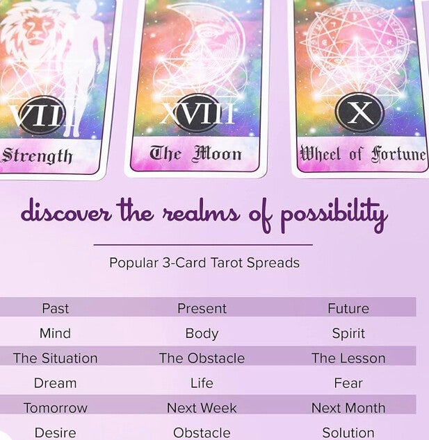 Whether you’re looking to entertain friends or tap into your intuition & wisdom to delve deeper into the past, present, and future, this deck provides everything you need for a standard tarot reading.