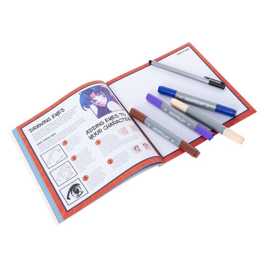 Doodle away with the Artmaker™ "How to Draw Manga Set. Enjoy amazing manga pens with all different sorts of tips for whatever style you decide to master.