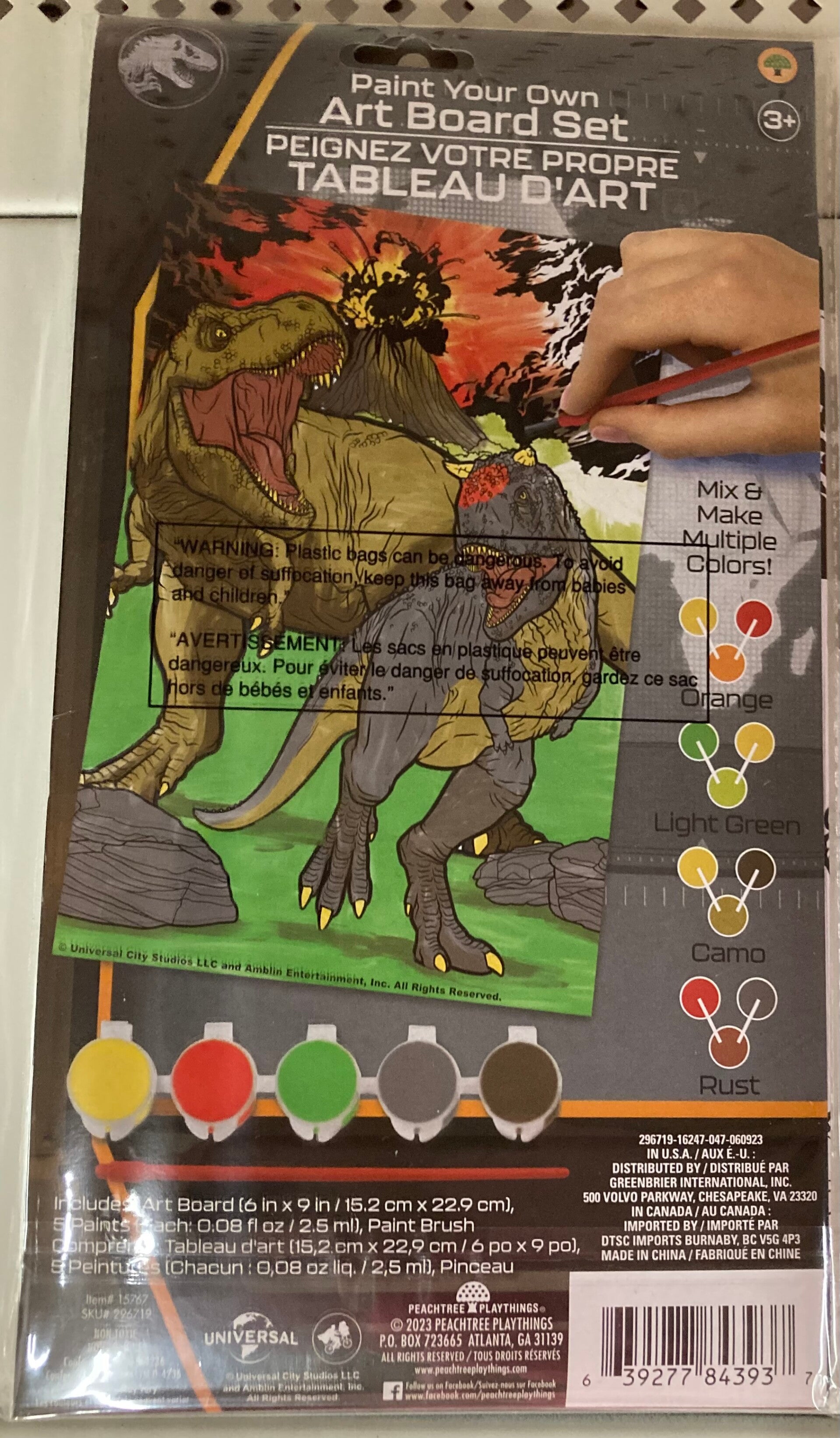 Help your child develop focus stamina, hand dexterity, & express a little creativity with this Jurassic park paint set!