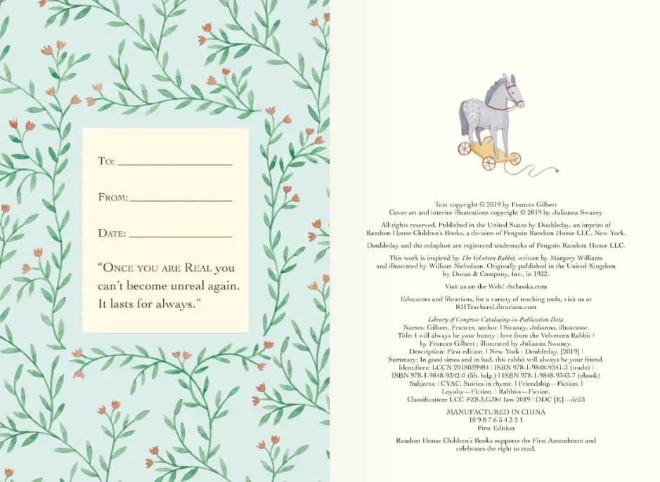 Inspired by The Velveteen Rabbit, this adorable gift book celebrates friendship, loyalty, and everlasting love. It's the perfect present for both children and adults, a warm read-aloud for those who enjoyed Love from the Very Hungry Caterpillar, and a thoughtful choice for year-round gift-giving.