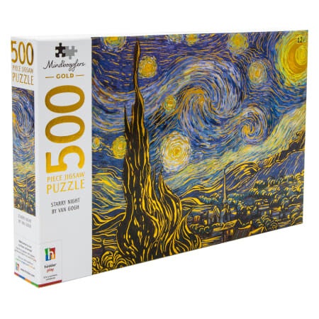 Puzzle people can assemble a true masterpiece with "Starry Night" - a Mindbogglers Gold: Fine Art Puzzle. With 500 pieces, it's just the right balance of challenge & fun. Make your eyes happy as you complete a famous Van Gogh work of Impressionist art!