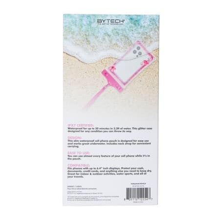 Travel to your swimming destination with a Glitter Waterproof Phone Pouch to keep you phone at arm's reach & capture all your water-filled adventures! Use to protect cash, documents, credit cards & more. Pouch is waterproof for up to 30 minutes in 3.3ft of water.