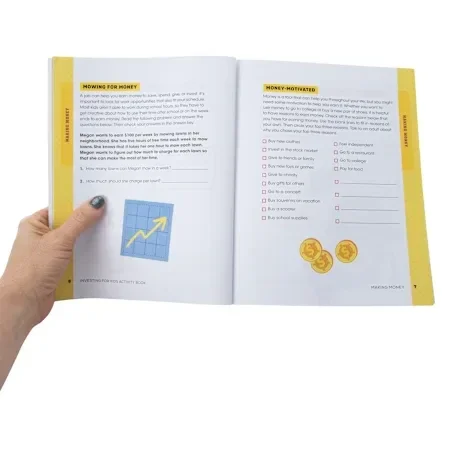 Open this investing for kids activity book & teach young minds about saving, investing & growing their money! Book contains 65 activities.