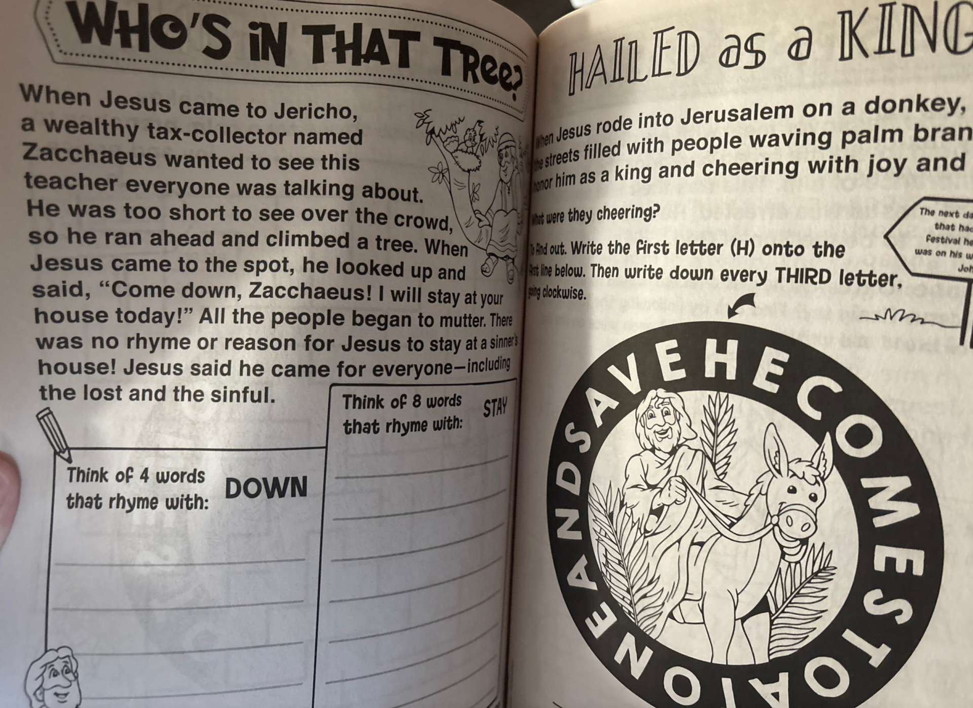 This activity book provides a variety if activities including word searches; games; word creation tasks; dot to dot pages; and more which bring characters & events from the Bible into the thoughts, hearts & minds of even the youngest disciples!