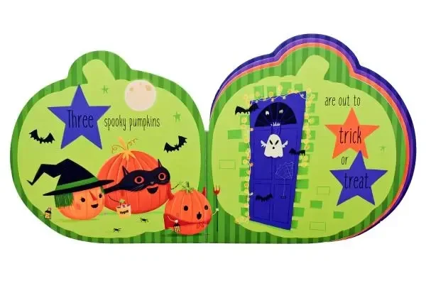 Children can learn to count to five with this pumpkin-shaped board book that features a fun Halloween rhyme! Young readers will love to turn the chunky pages, which increase in size with each turn of the page.