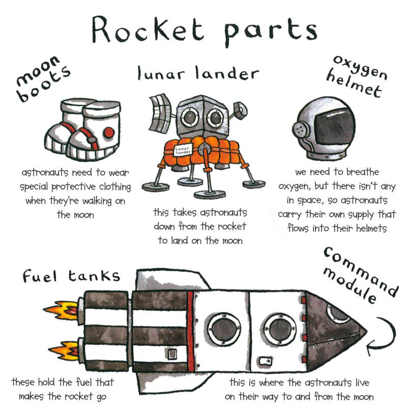 Zoom to the moon with our wacky animal astronauts in this playful picture book. Zippy wordplay, zappy art, plus a picture dictionary to make learning about astronauts and rockets fun!